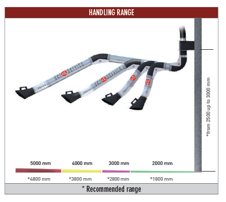 The ArmoTech arm is made of light aluminium alloy and has a rigid aluminium tube. It is extremely manoeuvrable, stable and strong due its self-supporting external pantograph structure balanced with double sealed gas pistons. It can be completed with different types of hoods depending on the application.