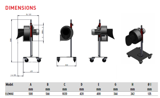 The Elemax vehicle exhaust fume extraction system is designed for closed environments which do not have wall or ceiling mounted extraction systems. With this unit, gas is expelled to the external environment through a (supplied) flexible hose.