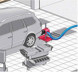 Auto workshop where localised extraction of exhaust gases from motorbikes, cars, vans and buses is required.